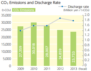 我們更換近800熒光燈和LED燈在中心實驗室在2013財政年度和分銷中心.由于上述努力,2012-2013財年看到減少二氧化碳排放量分別占11.7%和15.4%相比2011年的水平.的放電率指標(biāo)(單位產(chǎn)值二氧化碳排放)、環(huán)保目標(biāo)的設(shè)定,沒有進步,因為在生產(chǎn)中減少值大于減少能源消耗.