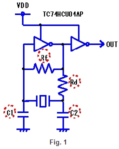 Table-1When反饋電阻(Rf)不是安裝在振蕩電路,如表1所示,諧振器不開始振蕩即使電源應用于振蕩電路.除非適當?shù)闹颠B接的電阻器,振蕩不開始正式晶體諧振器的模式,但泛音振動或基本振蕩開始.在基本諧振器(MHz頻帶)反饋電阻通常是1 MΩ.的泛音諧振器(MHz頻帶)值取決于集成電路和頻率特性,但是在幾個kΩ——數(shù)萬kΩ的范圍.的音叉型諧振器(千赫樂隊),需要連接一個電阻10 MΩ或更多.