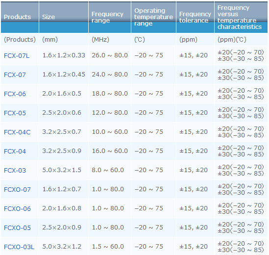 | 晶振參數表 | 石英晶體諧振器FCX-06 | |