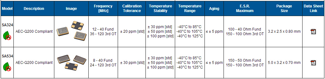 | 頻率公差25℃ | ±10ppm, ±15ppm, ±20 ppm, ±30 ppm, ±50 ppm | |