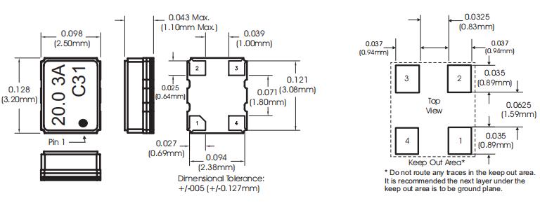 C31-020.0M|TCXO進(jìn)口溫補(bǔ)晶振|6G基站晶振 尺寸圖
