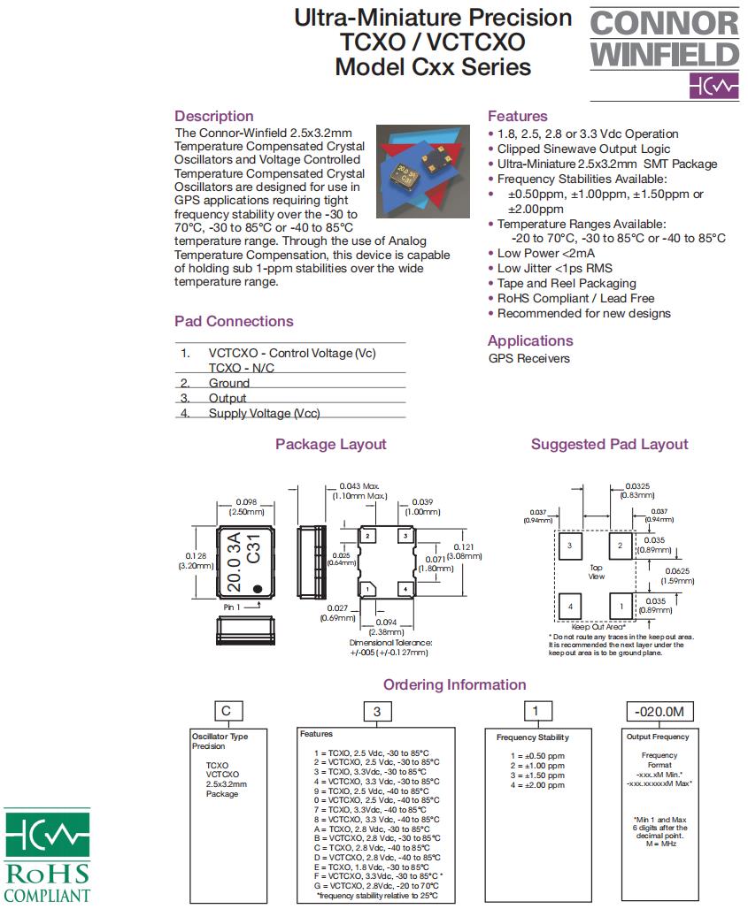 C31-020.0M|TCXO進(jìn)口溫補(bǔ)晶振|6G基站晶振,ConnorWinfield晶振,C3X有源晶振,C31-020.0M晶振,TCXO進(jìn)口溫補(bǔ)晶振,3225mm晶振,石英貼片晶振,頻率20MHz,電壓3.3V,工作溫度-30~85°C,頻率穩(wěn)定性0.5ppm,低功耗晶振,低抖動(dòng)晶振,6G基站晶振,GOS接收器晶振,衛(wèi)星導(dǎo)航系統(tǒng)晶振,智能交通控制器晶振.