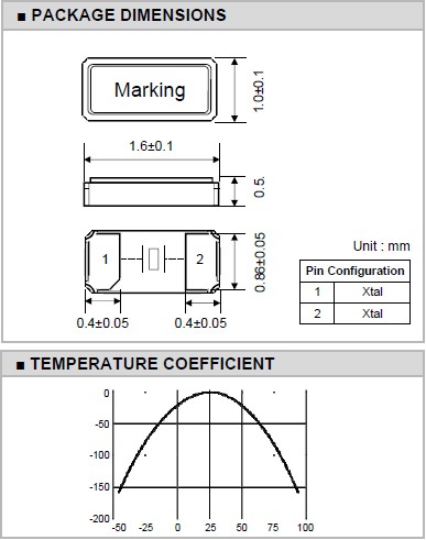 | 激勵功率 | DL | 1.0μW Max. | 推薦:100μW ~ 300μW |