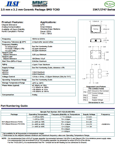 ILSI晶振,I747晶振,VC-TCXO振蕩器.貼片式石英晶體振蕩器,低電壓啟動功率,并且有多種電壓供選擇,比如有1.8V,2.5V,3.3V,3.8V,5V等,產(chǎn)品被廣泛應用于,平板筆記本,GPS系統(tǒng),光纖通道,千兆以太網(wǎng),串行ATA,串行連接SCSI,PCI-Express的SDH / SONET發(fā)射基站等領域.符合RoHS/無鉛.