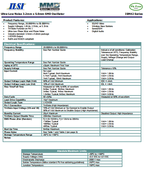 ILSI晶振,ISM42晶振,耐高溫晶振.5032mm體積的石英晶體振蕩器,有源晶振,該產(chǎn)品可驅(qū)動(dòng)2.5V的溫補(bǔ)晶振,壓控晶振,VC-TCXO晶體振蕩器產(chǎn)品,電源電壓的低電耗型,編帶包裝方式,可對(duì)應(yīng)自動(dòng)高速貼片機(jī)自動(dòng)焊接,及IR回流焊接(無(wú)鉛對(duì)應(yīng)),為無(wú)鉛產(chǎn)品,超小型,質(zhì)地輕.產(chǎn)品被廣泛應(yīng)用到集成電路,程控交換系統(tǒng),無(wú)線發(fā)射基站.