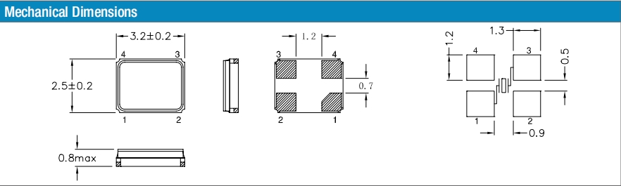 | 頻率溫度特征 | f_tem | ±50× 10-6 /-30°C~+85°C | 超出標準的規(guī)格請聯(lián)系我們. |