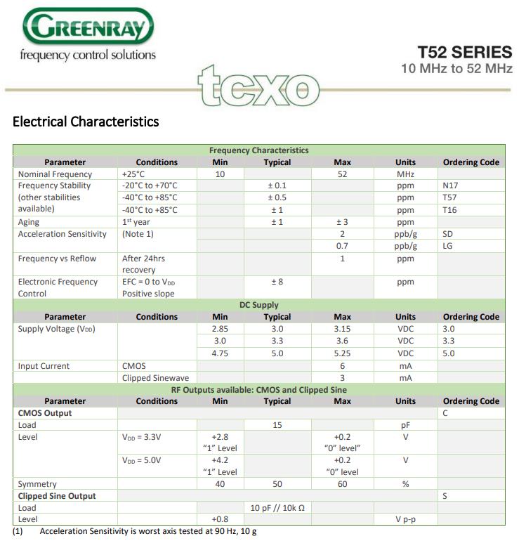 T52-N17-C-3.3-LG-20.0MHz-E,低相噪晶振,6G基站晶振參數表