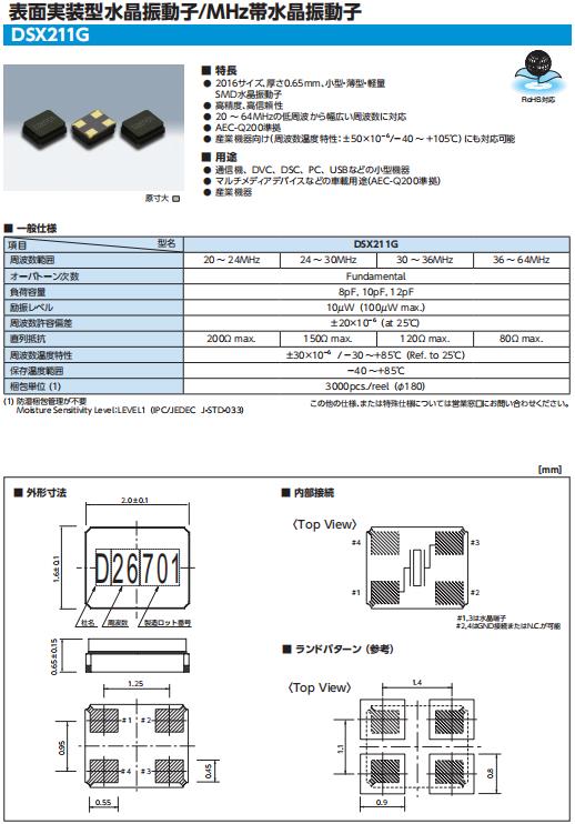 晶體振蕩器的內部電路使用C-MOS.閉鎖、靜電對策請和一般的C-MOS IC一樣考慮.DSX211G陶瓷貼片晶體,KDS晶振,1ZZCAA26000AB0A晶振.