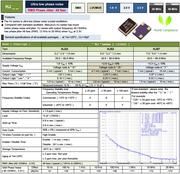 MERCURY晶振,貼片石英晶振,HJ53有源晶體.無(wú)論是溫補(bǔ)晶體也好,壓控晶振也罷,產(chǎn)品均采用了,離子刻蝕調(diào)頻技術(shù),比目前一般使用的真空蒸鍍方式調(diào)頻,主要在產(chǎn)品參數(shù)有以下提升:1.微調(diào)后調(diào)整頻率能控制在±2ppm,一般只能保持在±5ppm;2.產(chǎn)品的激勵(lì)功率相關(guān)性參數(shù)有大幅提升;3.產(chǎn)品的長(zhǎng)期老化率可保證在±2ppm之內(nèi).