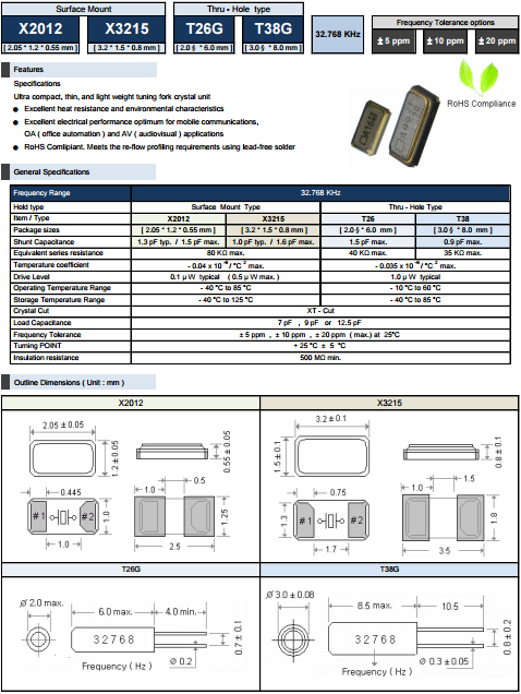 MERCURY晶振,貼片晶振,X3215晶振,32.768K石英晶體諧振器.32.768KHz千赫子時鐘晶體,其本身主要應用在時鐘控制產品,或者是控制模塊,主要給時鐘芯片提供一個基準信號,其主要各項功能還得看應用何種產品,本產品具有小型,薄型,輕型的貼片晶振表面型音叉式石英晶體諧振器,產品具有優良的耐熱性,耐環境特性,可發揮晶振優良的電氣特性,符合RoHS規定,滿足無鉛焊接的高溫回流溫度曲線要求,金屬外殼的封裝使得產品在封裝時能發揮比陶瓷諧振器外殼更好的耐沖擊性.