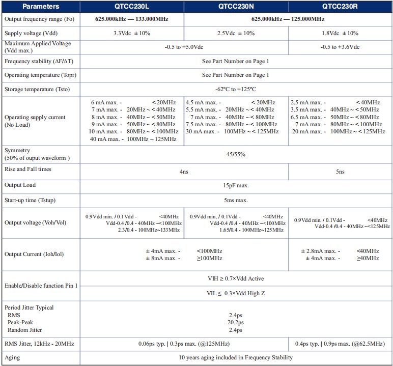 QTCC230LD18-52.000MHz,Q-TECH有源晶振,3225mm石英貼片晶振參數表