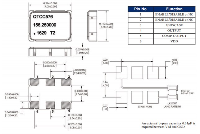 QTCC576LPD12-156.250MHz,LVPECL差分貼片晶振,6G基站晶振 參數表