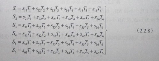 式中S1、S2、S3分別表示沿x、y、z方向的正應變;S4、S5、S6分別表示沿x、y、z平面的切應變。