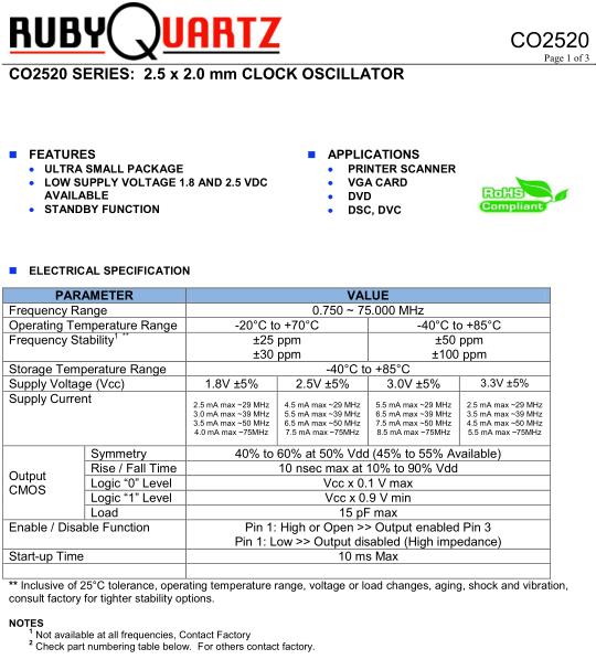 所有石英晶體諧振器和實時時鐘模塊都以IC形式提供.Rubyquartz有源振蕩子,CO2520時鐘振蕩器,CO2520-12.000-25-50-TR晶振.