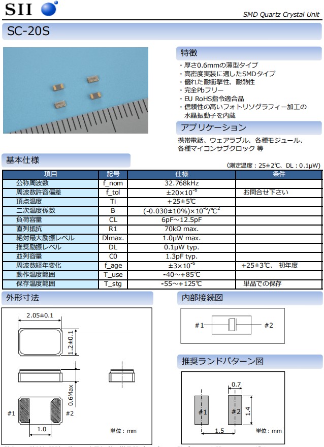 | Q-SC20S0322070CAAF | Seiko晶振 | SC-20S | 32.768kHz | ±20ppm | 7pF |