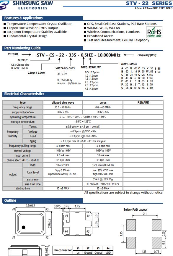 SHINSUNG韓國(guó)晶振,STV-22無(wú)線通信振蕩器,STV-CS-22-33S-0.5HZ-12.000MHz晶振