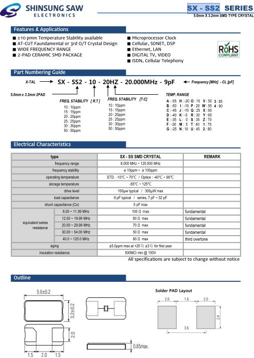 | type | SX - SS2 SMD CRYSTAL | REMARK | |