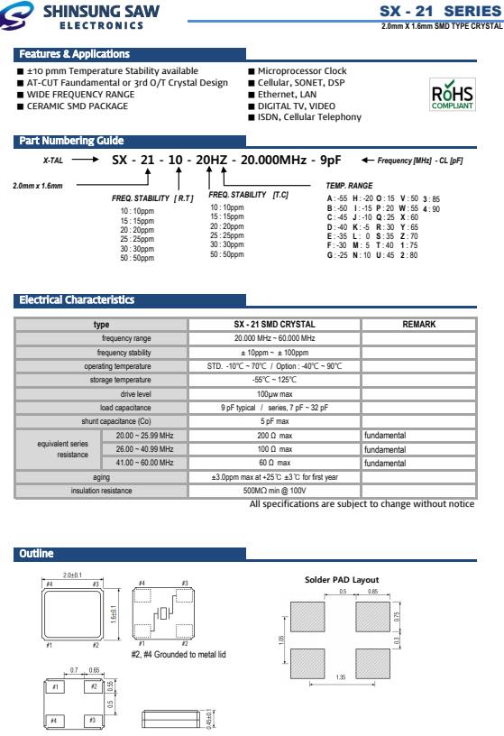 | type | SX - 21 SMD CRYSTAL | REMARK | |