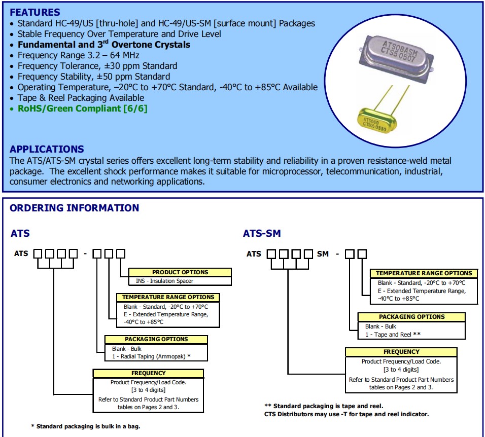 | ATS050ASM-1 | CTS晶振 | ATS-SM | MHz Crystal | 5MHz |