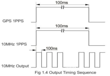 默認情況下,GPS標準1PPS的脈沖寬度為100ms,而10MHz 1 PPS衍生信號的脈沖寬度也為100ms。 10MHz信號輸出上升沿與1PPS上升沿同步。