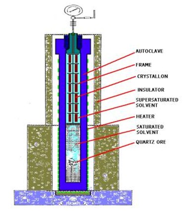 石英晶體的生長設備是高壓釜,如下圖: