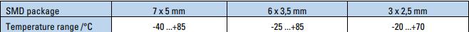 對于通常的時鐘應(yīng)用,對石英晶體振蕩器沒有特殊要求。情況不同了,然而,當(dāng)發(fā)射器和接收器必須相互調(diào)諧時,例如藍牙的情況。對于使用晶體的電路,藍牙需要特別窄的公差(+/- 20ppm)的技術(shù)限制,振蕩晶體正好是這個規(guī)格(即+/- 10ppm在25°C加上+/- 10ppm在溫度范圍內(nèi))。甚至雖然該技術(shù)在不斷發(fā)展,但仍能在有限程度上達到所要求的公差小尺寸,如表1所示。