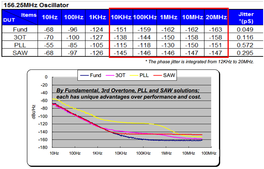 Stability ±50ppm/±100ppm OTR -5℃~85℃/-10℃~70℃ 156.25M, Phase Jitter Typ. 0.30pS |