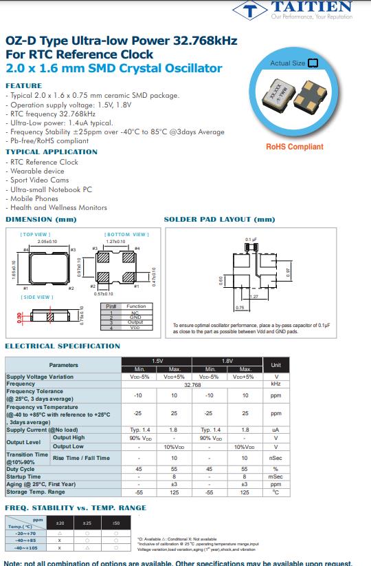 OZ-D型超低功耗32.768kHz