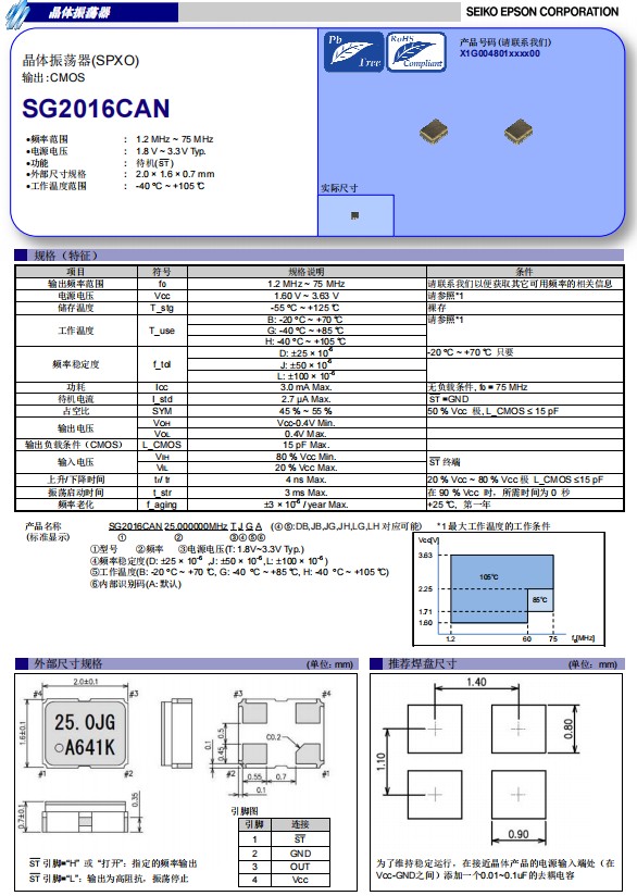 愛普生晶振SG2016CAN可以滿足光模塊高溫的需求,X1G004801005900,有源晶振