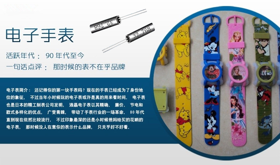 還記得小時(shí)候帶的電子手表嗎?電子表對(duì)我兒時(shí)的印象很深,記得讀小學(xué)三年級(jí)的時(shí)候班里有個(gè)同學(xué)他媽媽給他買了一塊電子表,很漂亮,因?yàn)槭切『⒆訂??總喜歡拿著別人沒有的東西在別人面炫耀,隨著時(shí)間的過去班里有越來越多的同學(xué)都賣了電子表,后來有一天放學(xué)回到家里我就和我媽媽說我要買電子表,班里很多人都買了,可是媽媽沒有答應(yīng),那時(shí)候的電子表很便宜幾塊錢就能買到,可媽媽一直沒有跟我買,直到我讀四年級(jí)了那天我過生日,媽媽送給我一塊電子表當(dāng)生禮物,當(dāng)時(shí)特別高興,那是我擁有的第一塊電子手表??墒菦]有帶多久有一次和同學(xué)玩耍時(shí)不小心把表給弄壞了,不動(dòng)了,拿回家爸爸把表拆開來看能不能修好,當(dāng)時(shí)我看到里面有很多奇奇怪怪的東西,也不知道是什么,可有一顆小東西到今天我接觸了這個(gè)行業(yè)才知道,原來它叫做晶振元件,是給電子表提供時(shí)間顯示的一顆電子元件。電子表最早由日本精工制表公司發(fā)明,而精工早期是做手表的,慢慢得也開始生產(chǎn)晶振,才會(huì)有今天的精工晶振品牌。