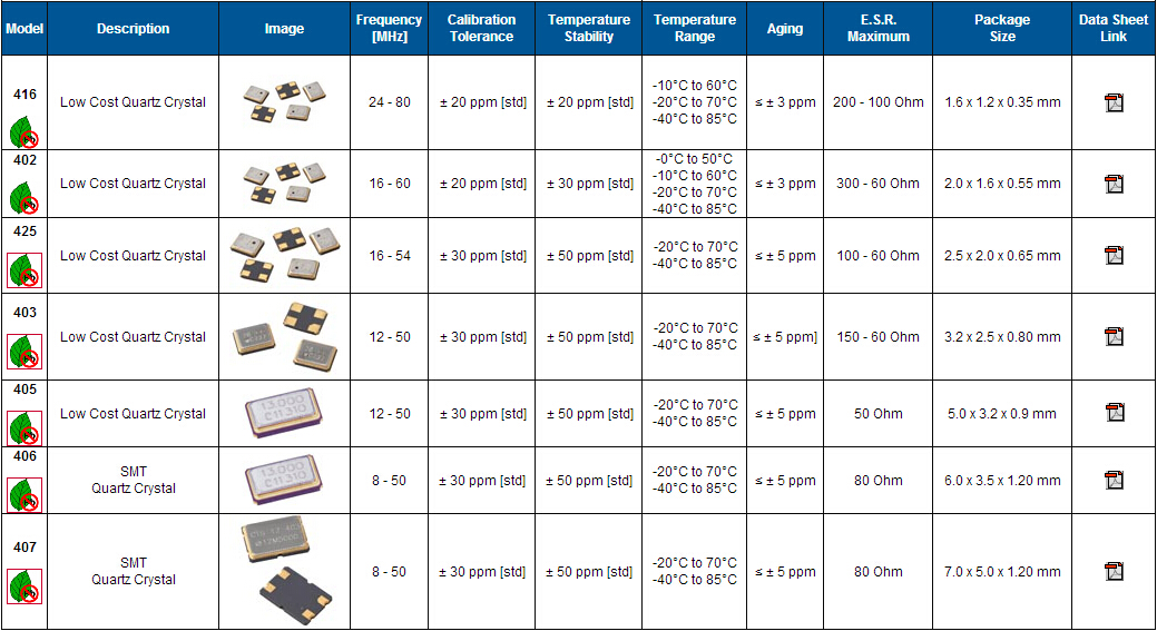 | 晶振規格參數 | 型號402 | |