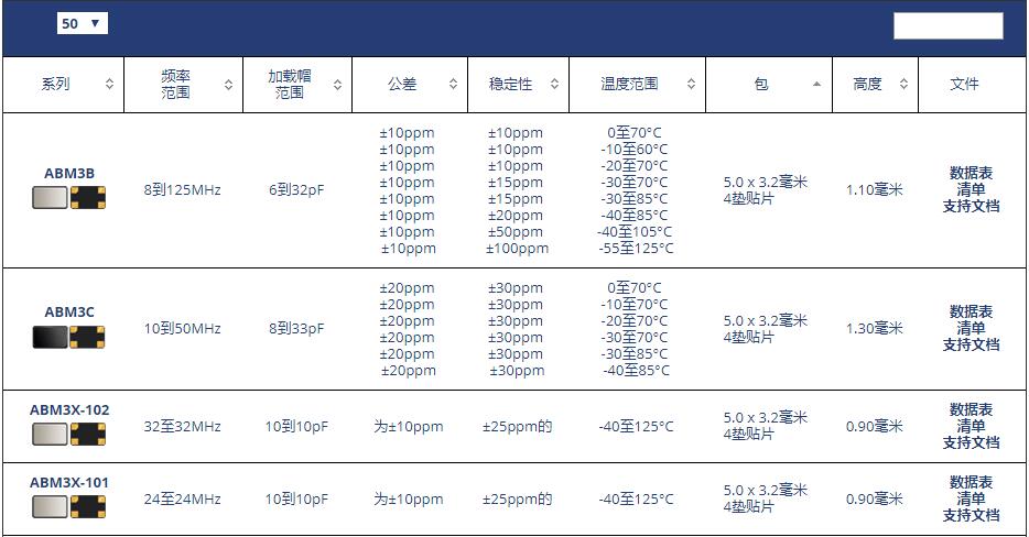ABM3晶振系列原廠代碼表: