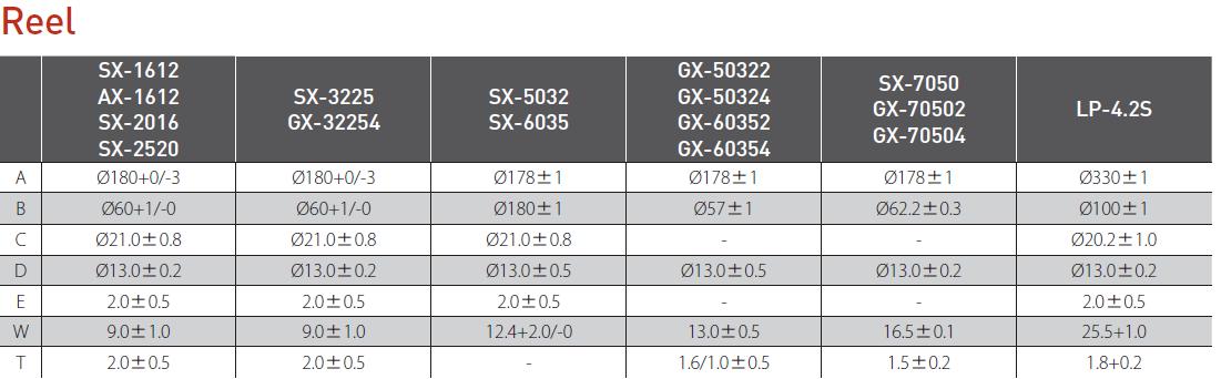 | 晶振目錄 | 希華晶振型號SX-2016mm | |