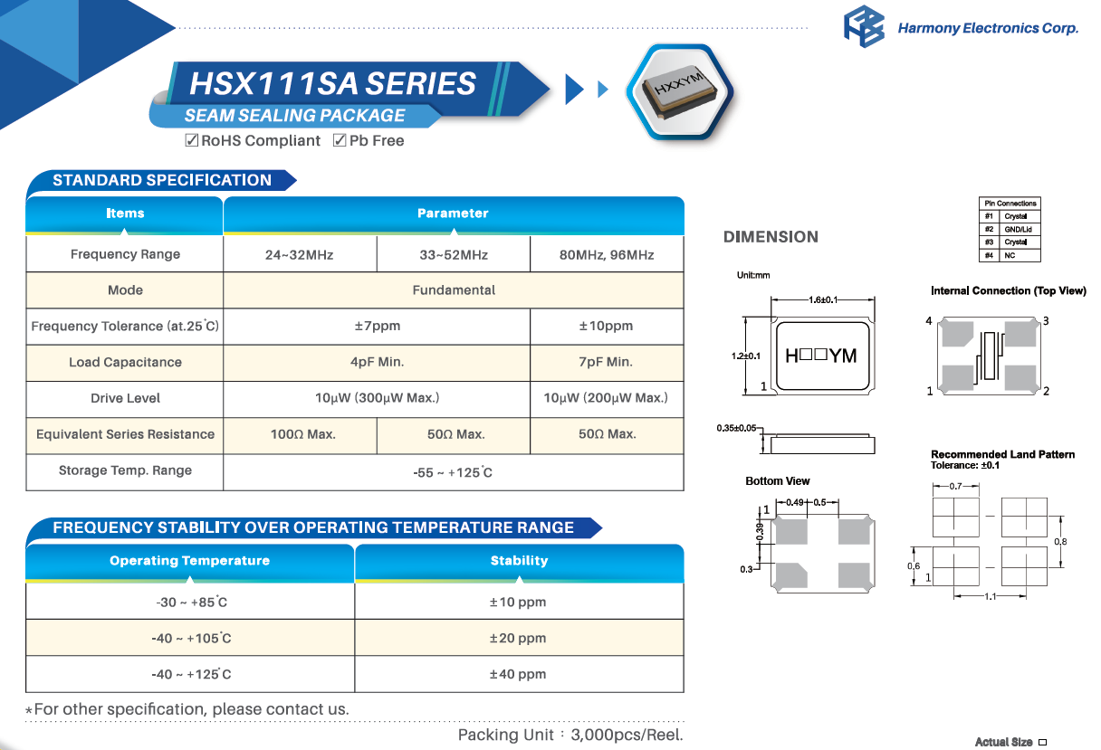 | X1C032000B81H-HU | 加高晶振 | HSX111SA | 32 MHz | ±10ppm | 8pF |